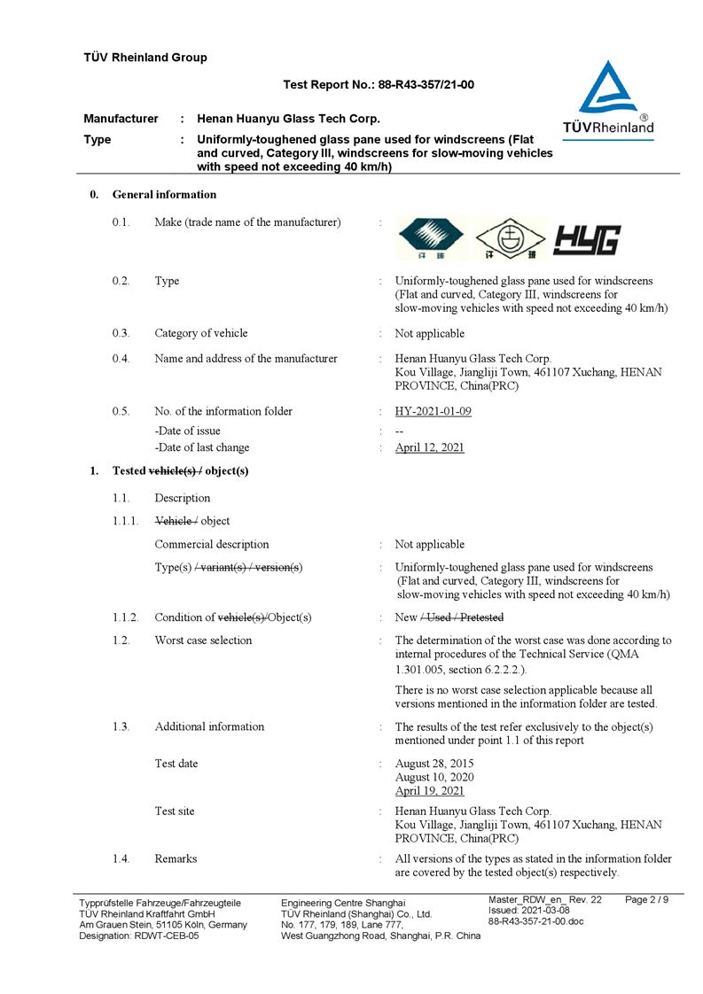 河南環(huán)宇玻璃科技股份有限公司年產(chǎn)35萬平方米驗收報告公示