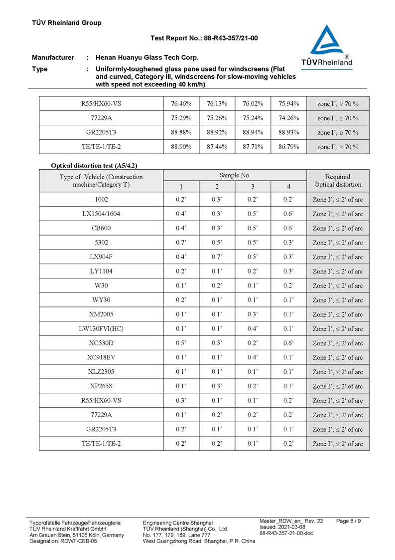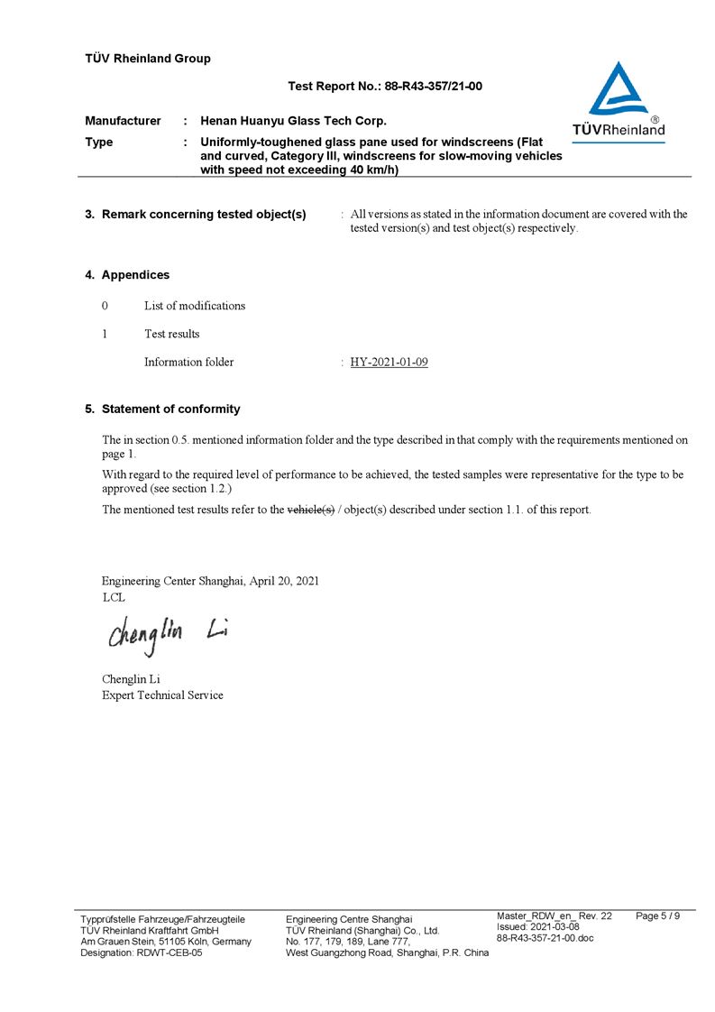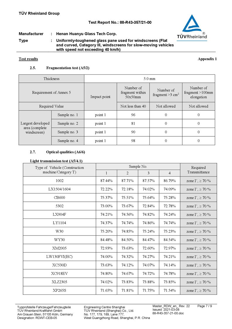 河南環(huán)宇玻璃科技股份有限公司年產(chǎn) 5 萬平方米驗收報告公示